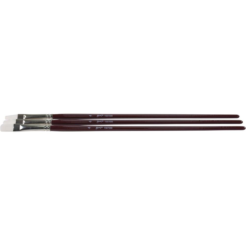 Sax Bright Super White Synthetic Fiber Paint Brush features seamless nickel-plated ferrules on long lacquered hardwood handles. Preferred for oils and acrylics because of its long lasting and resilient characteristics, this durable brush is a better grade white synthetic miracle filament that behaves like a red sable at moderate prices. Sold as a pack of 3.