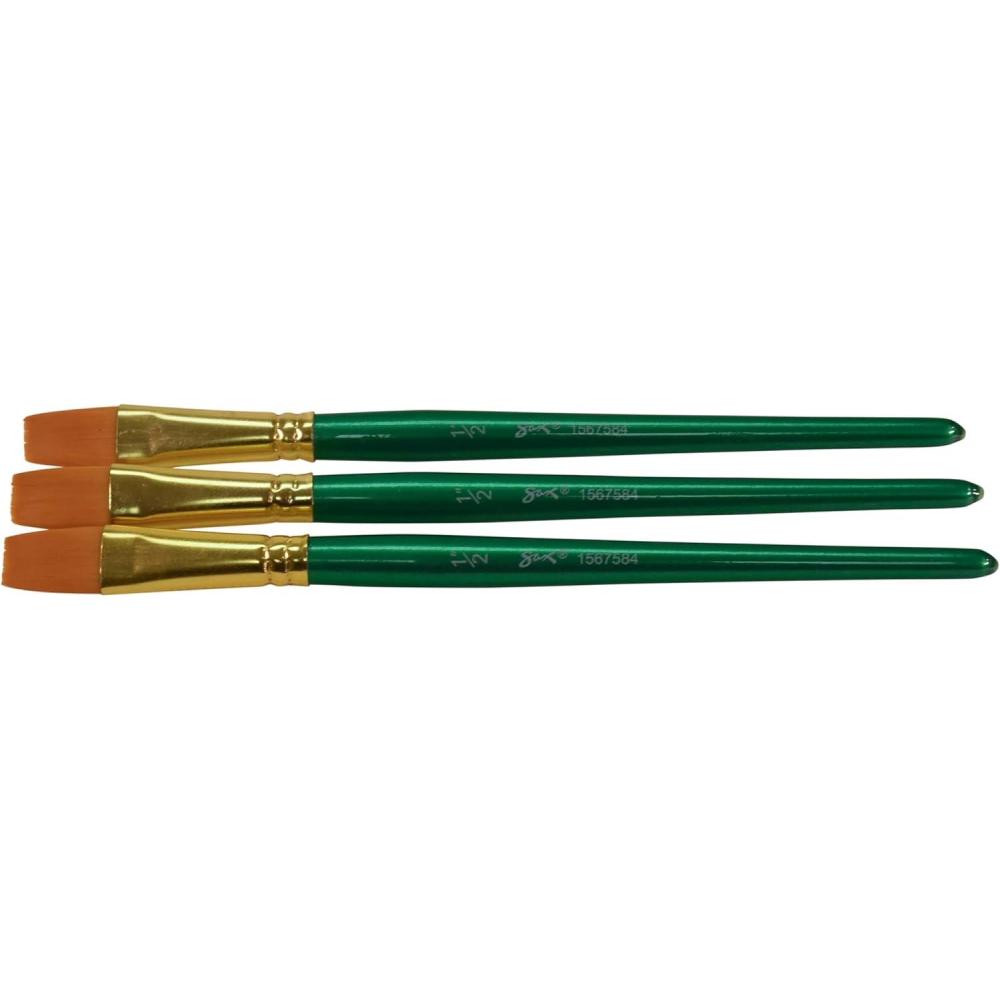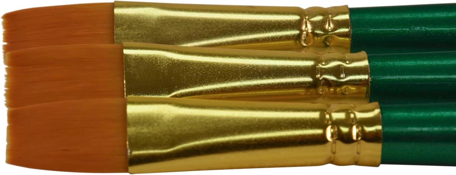 The Sax Optimum Golden Synthetic Taklon Paint Brush features an anodized aluminum ferrule that is resistant to rust, seamless and has a gold tone. This flat brush features a short, enameled hardwood handle, highly economical, and offers optimum spring, sharp edges and smooth application. Sold as a pack of three 1/2 inch brushes.