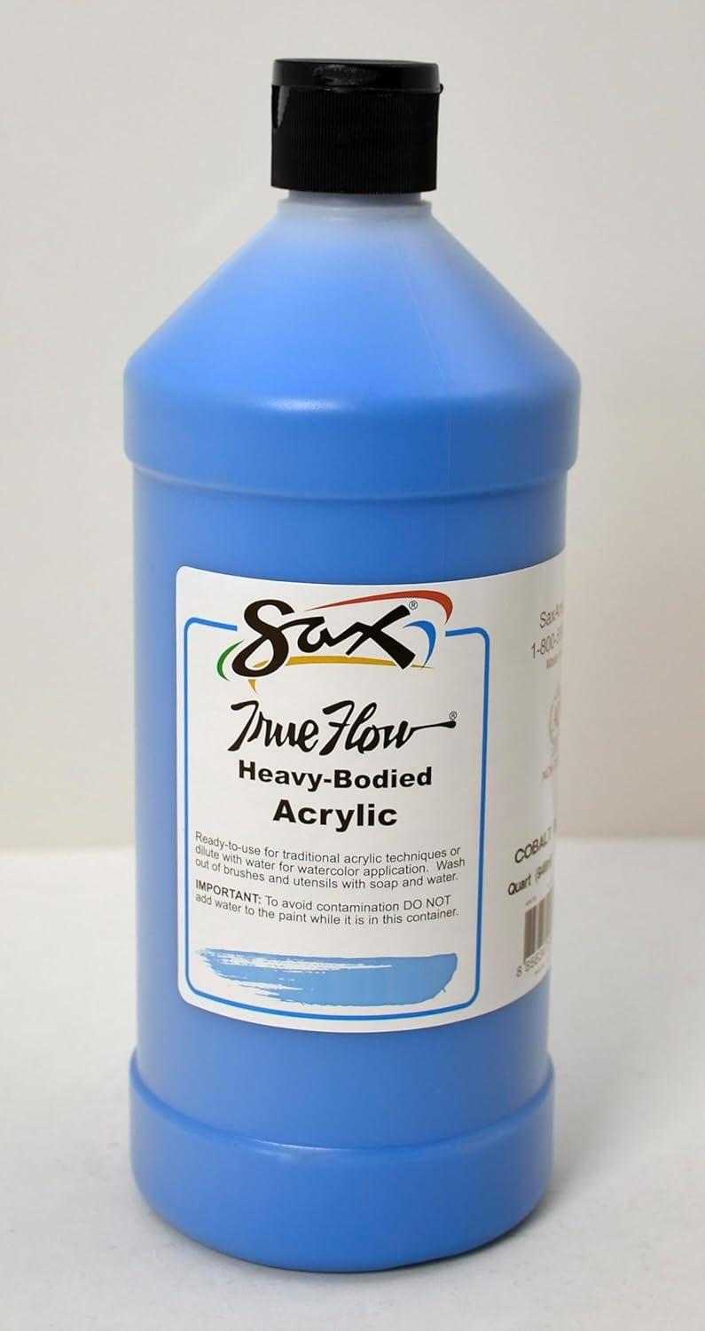 This Sax heavy body acrylic paint in a cobalt blue color comes in a convenient 1 quart bottle to accommodate the classroom. Non-separating and intermixable for a range of hues, our art paint is easy to apply. This paint dries to a matte finish and is ideal for traditional acrylic painting as well as block printing or silk screening. Enjoy excellent flow, coverage, blending, and drying for a variety of projects. Use the classroom paint for school assignments, art classes, group painting, or background canvas painting. Each acrylic paint comes in a durable plastic container for convenient handling and storage. Not recommended for outdoor use.