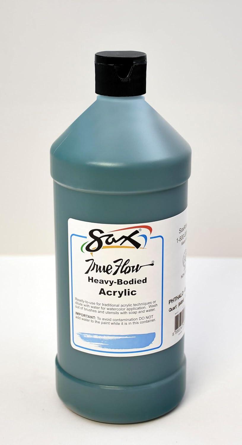 This Sax heavy body acrylic paint in a phthalo green color comes in a convenient 1 quart bottle to accommodate the classroom. Non-separating and intermixable for a range of hues, our art paint is easy to apply. This paint dries to a matte finish and is ideal for traditional acrylic painting as well as block printing or silk screening. Enjoy excellent flow, coverage, blending, and drying for a variety of projects. Use the classroom paint for school assignments, art classes, group painting, or background canvas painting. Each acrylic paint comes in a durable plastic container for convenient handling and storage. Not recommended for outdoor use.