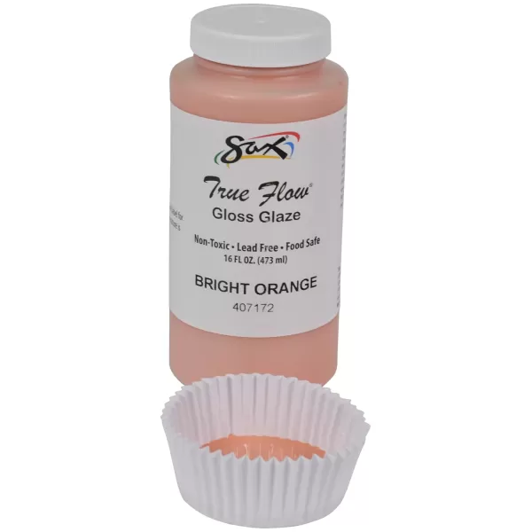 The Sax gloss glaze in opaque Bright Orange is a high-quality glazing paint that's non-toxic and dinnerware safe when fired to cone 06-05. During application, the glaze may be a different color and will change to the desired look after the required kiln firing. The color does not change when fired at cone 6.Download Sax True Flow Glaze Care Tips